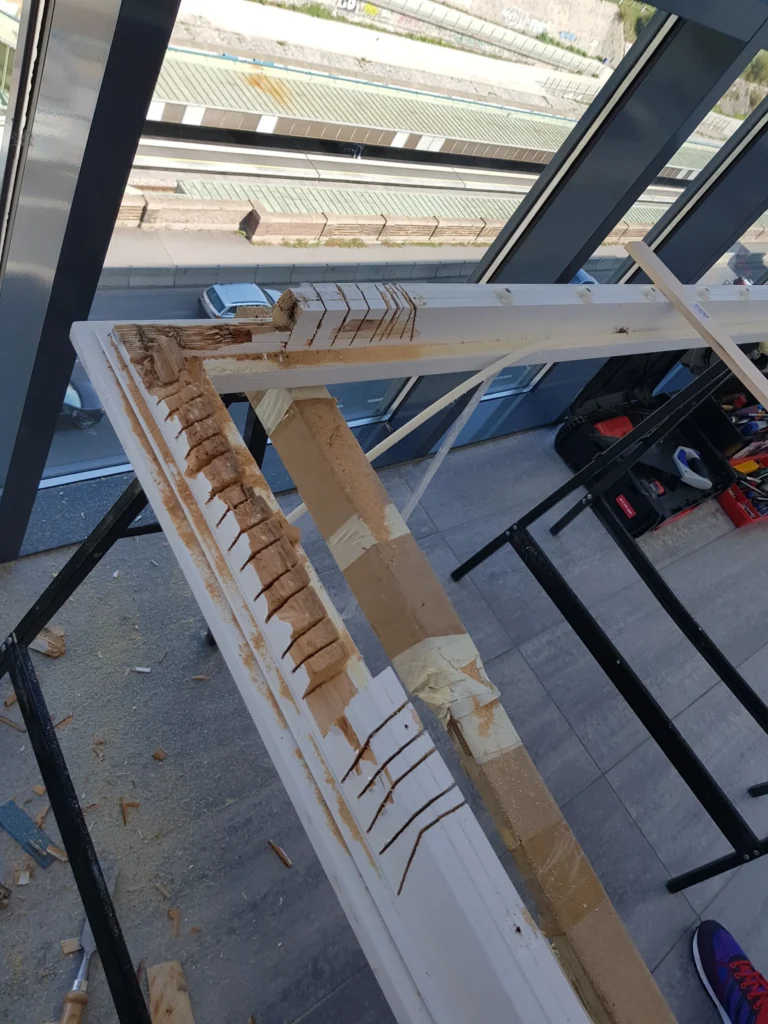 Besonders bei älteren Holzfenstern in Wiener Altbauten wird häufig vorschnell ein Austausch empfohlen. Dabei lassen sich selbst bei Feuchtigkeitsschäden oder beschädigten Rahmen einzelne Holzteile gezielt ersetzen. Wir restaurieren bestehende Holzfenster fachgerecht und tauschen nur jene Elemente aus, die tatsächlich betroffen sind. So bleibt die Substanz erhalten und der ursprüngliche Charakter des Fensters bewahrt.